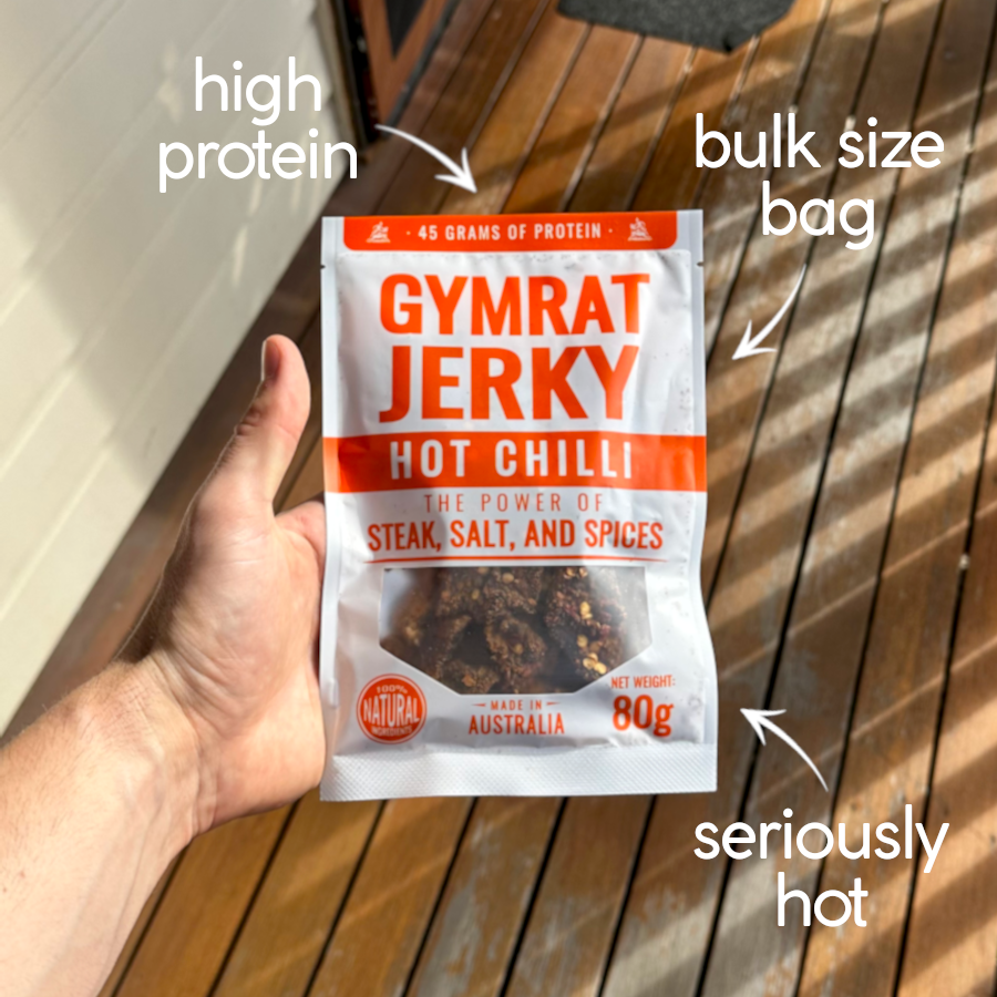 Absolutely sensational stuff, I had lost faith that a decent spicy beef jerky even existed. I was already a fan of the original flavour but Gymrat jerky has truly outdone themselves with the hot chilli. Such a good balance of flavour and spice, can’t get enough!