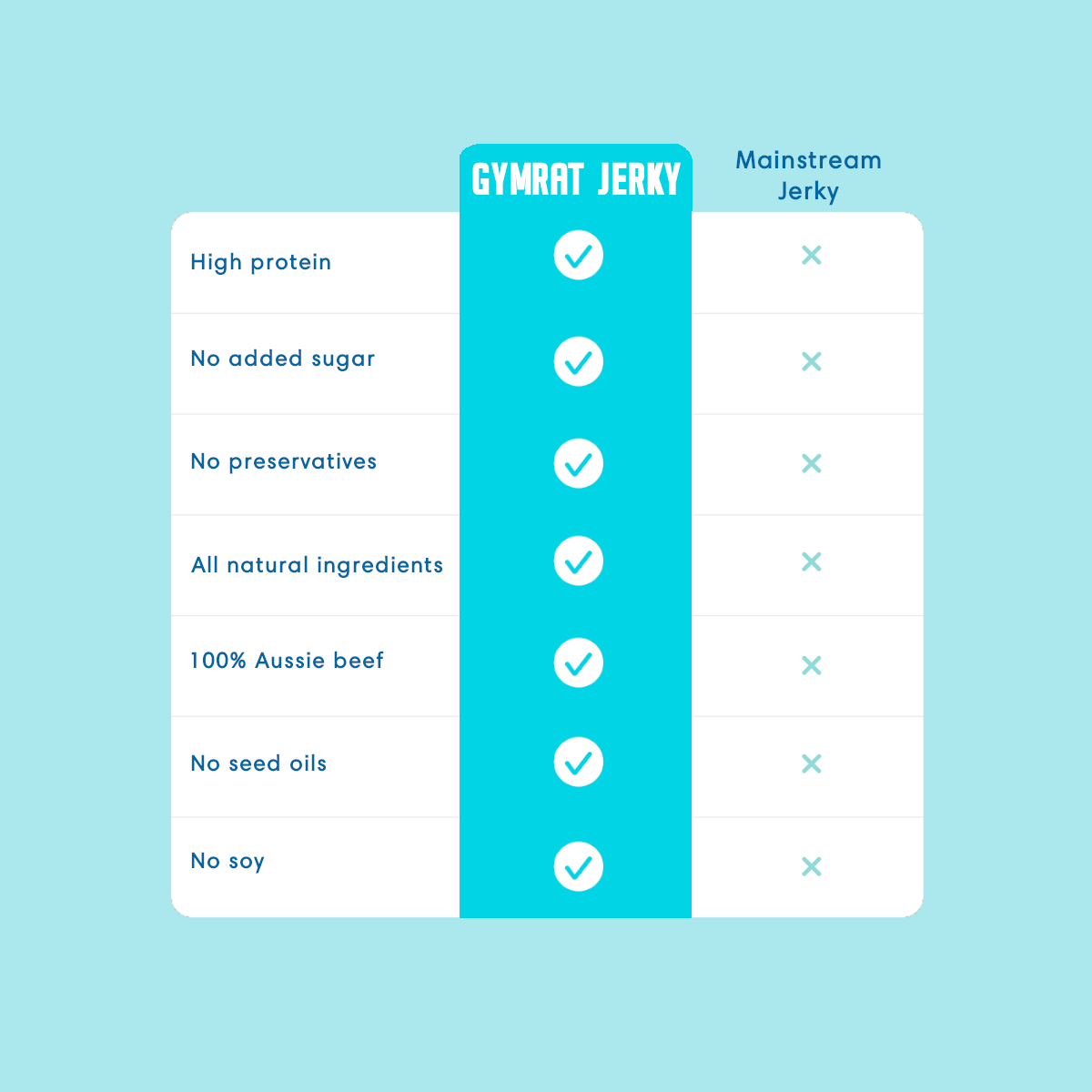 NEVER miss out again with Gymrat Jerky: clean protein you can take EVERYWHERE.